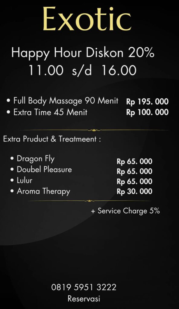 “Untuk SOP Petik Mangga (PM)/ Hand Job (HJ) istilah yang di pakai untuk pelayanan, kita lebih ke pelayanan saja KK, Happy Hours Diskon 20%,” paparnya.